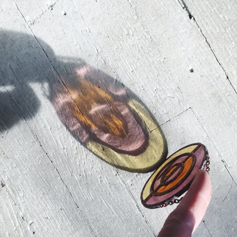It was this time last year that I made the first one of these suncatcher sculptures. As my glass cutter skimmed around each curve I realized that Joni Mitchell’s song The Circle Game was playing on repeat in my head, “... and the seasons, they go round and round...” The rest of these pieces followed over the rest of the year as I became infatuated with the hypnotic, therapeutic trance they induced in me as I cut, foiled, soldered and finished each one.